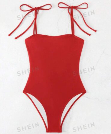 Traje de baño con lazo delantero y trasero en color rojo (sz2412097576308063)