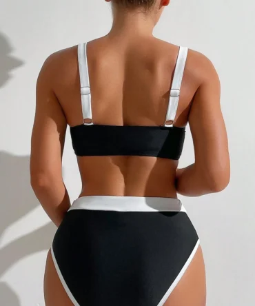 Traje de baño de dos piezas con bloques de color y bikini de cintura alta (sz2403148166450405)