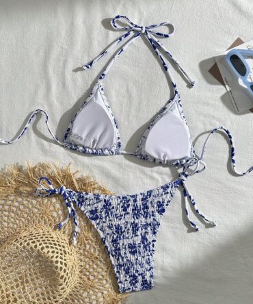 Traje de baño con estampado floral triángulo con cordón lateral (sz2307035070032736)