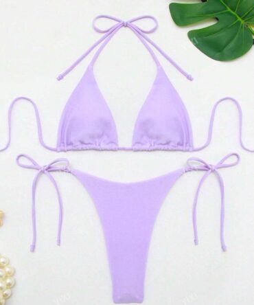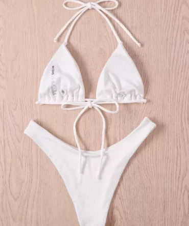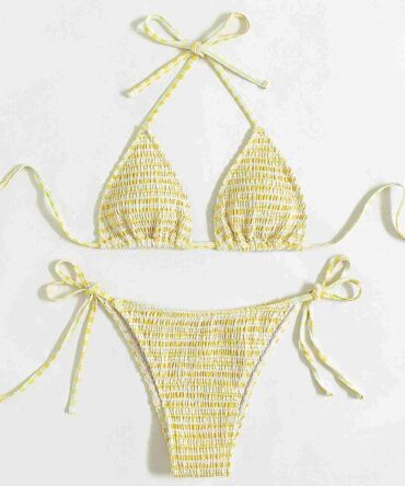 Traje de baño de dos piezas con top de triangulo y textura (sw2108043612511701)