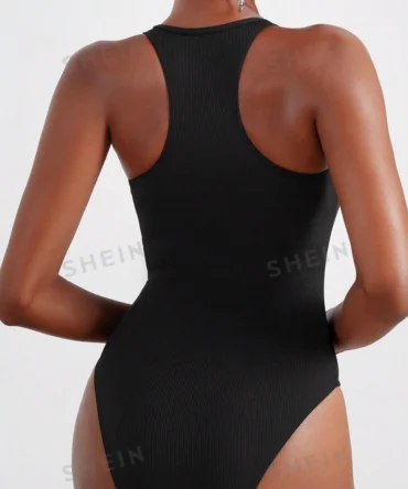 Traje de baño entero de cuello alto y cremallera (sz2403226180617571)