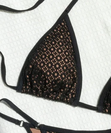 Traje de baño triángulo de canalé con nudo lateral (sw2202240678131230)