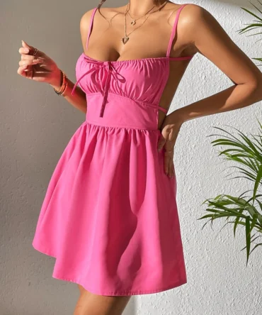 Vestido de tirantes con cordón delantero pecho con fruncido (sw2212103338868989)