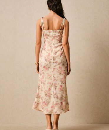 Vestido de tirantes con cuello caído y estampado floral (sz25022110297474702)