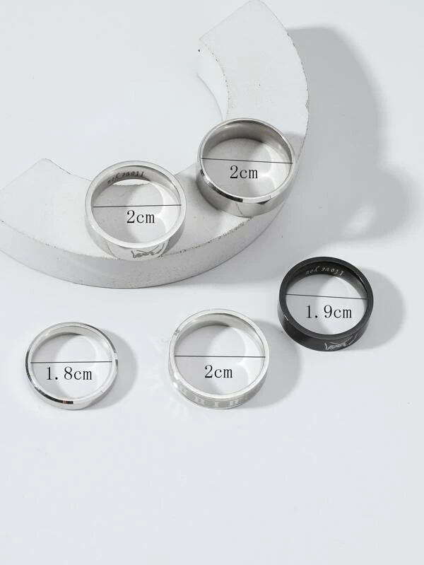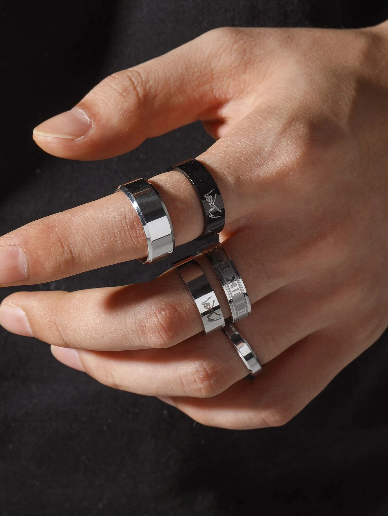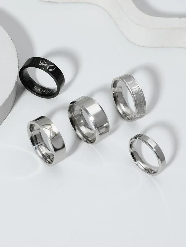 Anillo con detalle de números romanos de acero inoxidable – 5 Piezas (sj2109087144367097)