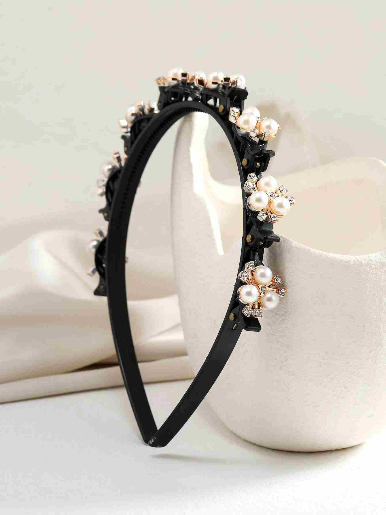 Cintillo con diseño de diamante de imitación y perla artificial (sc2204159260974622)