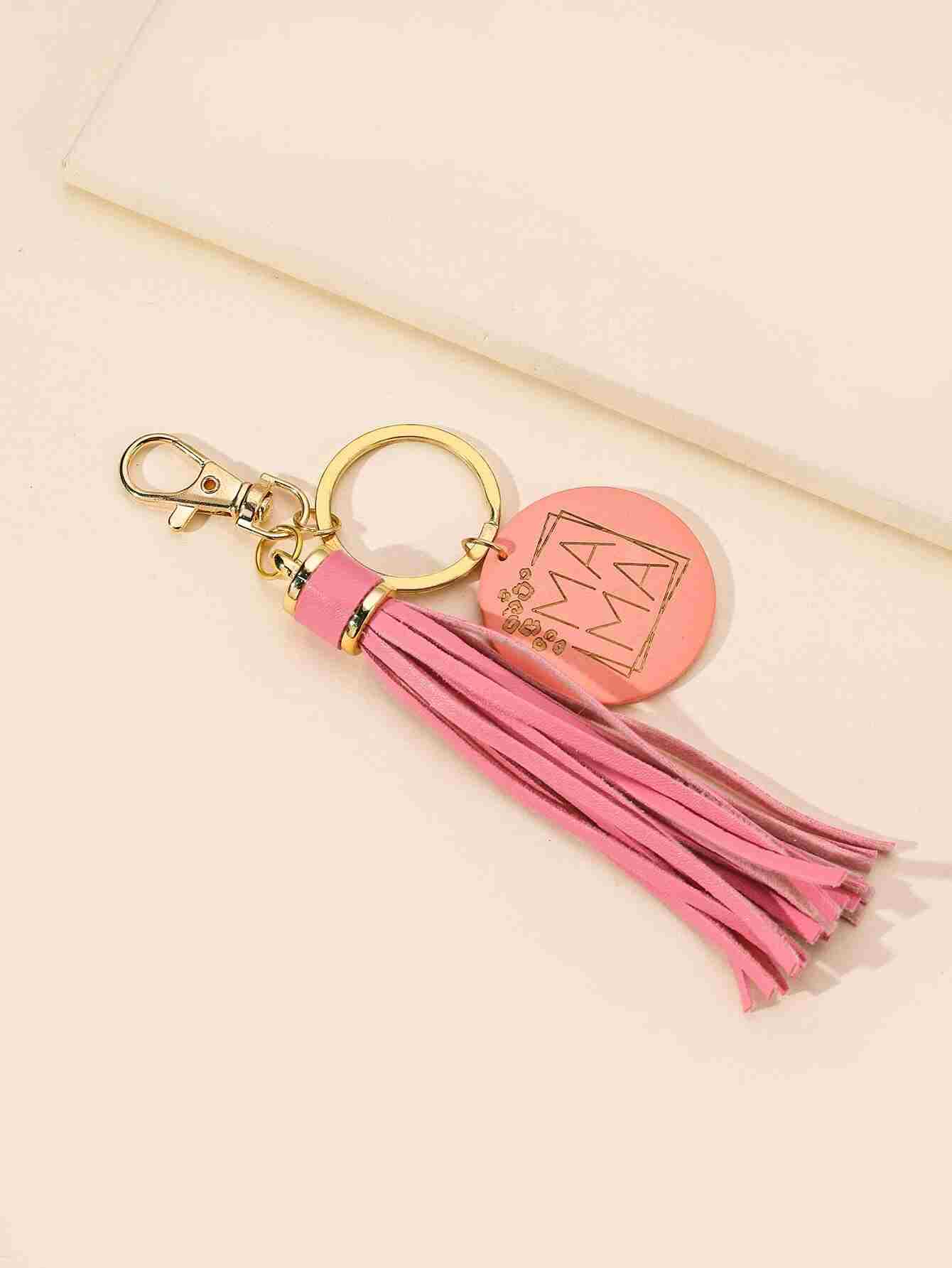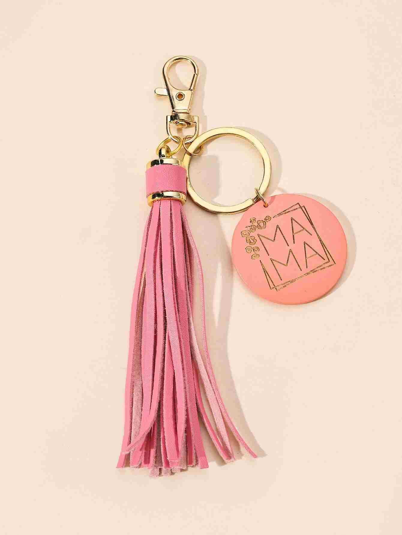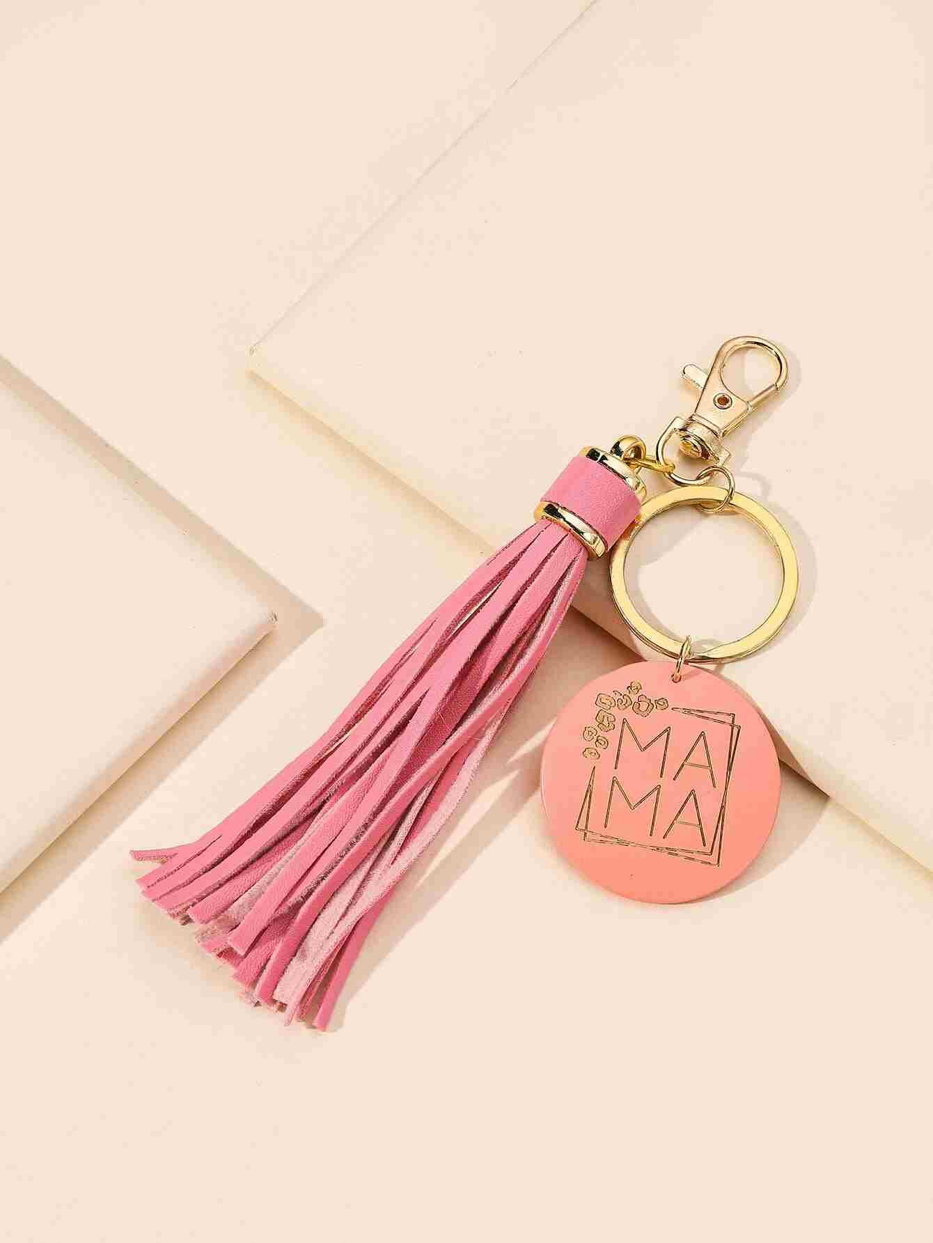 Llavero con estampado de Mama redondo y diseño de fleco (sc2205252227570485)