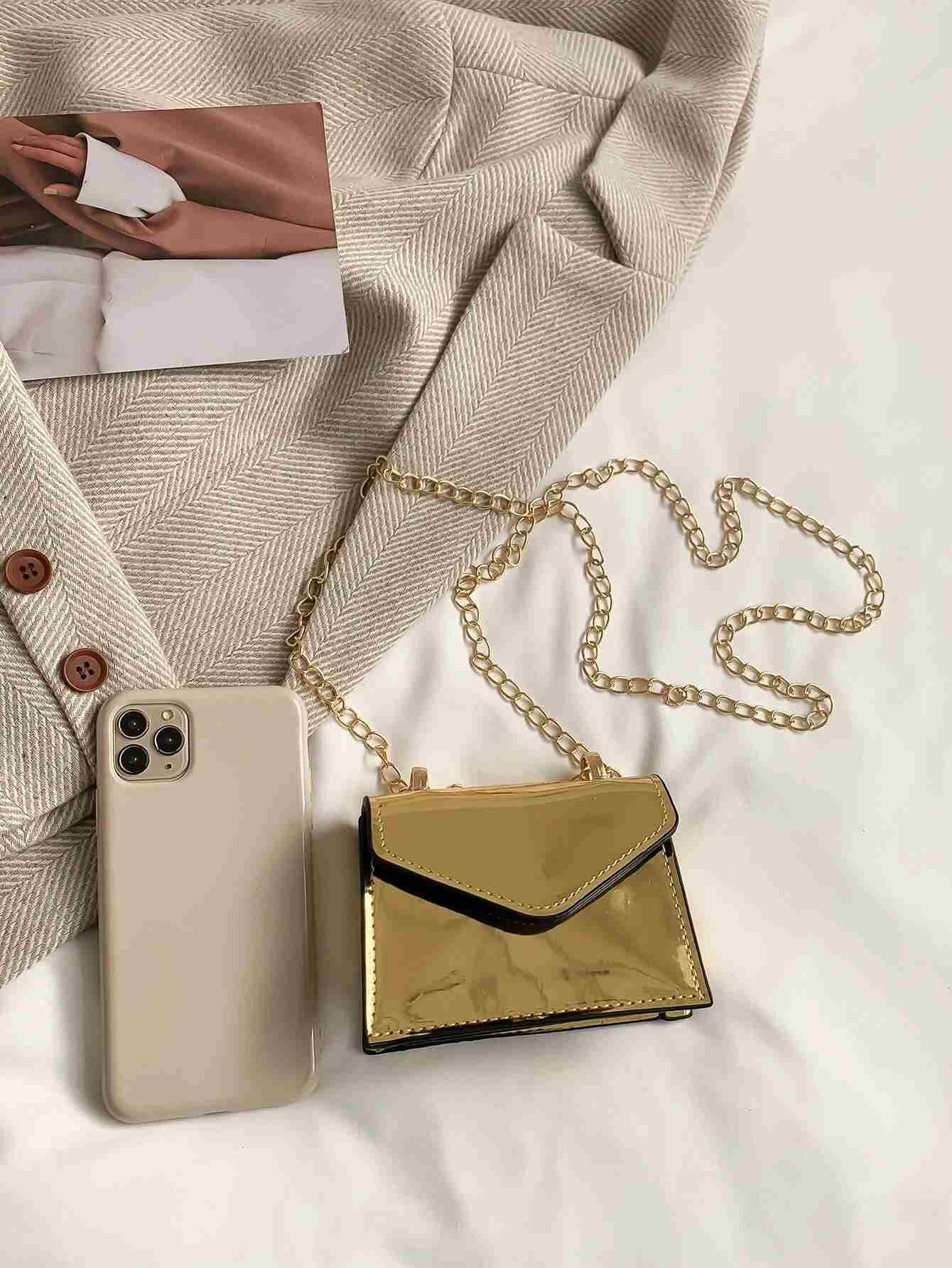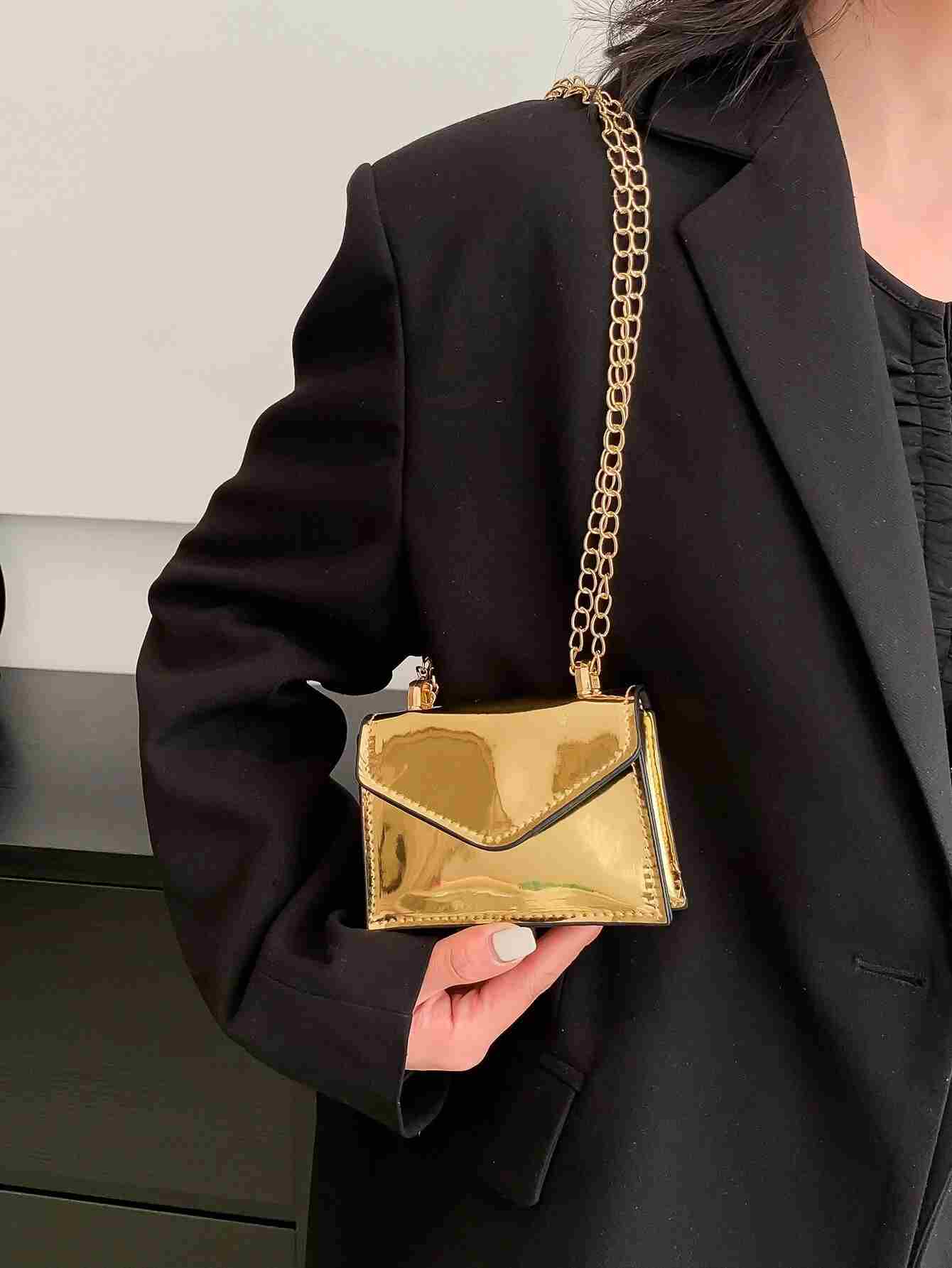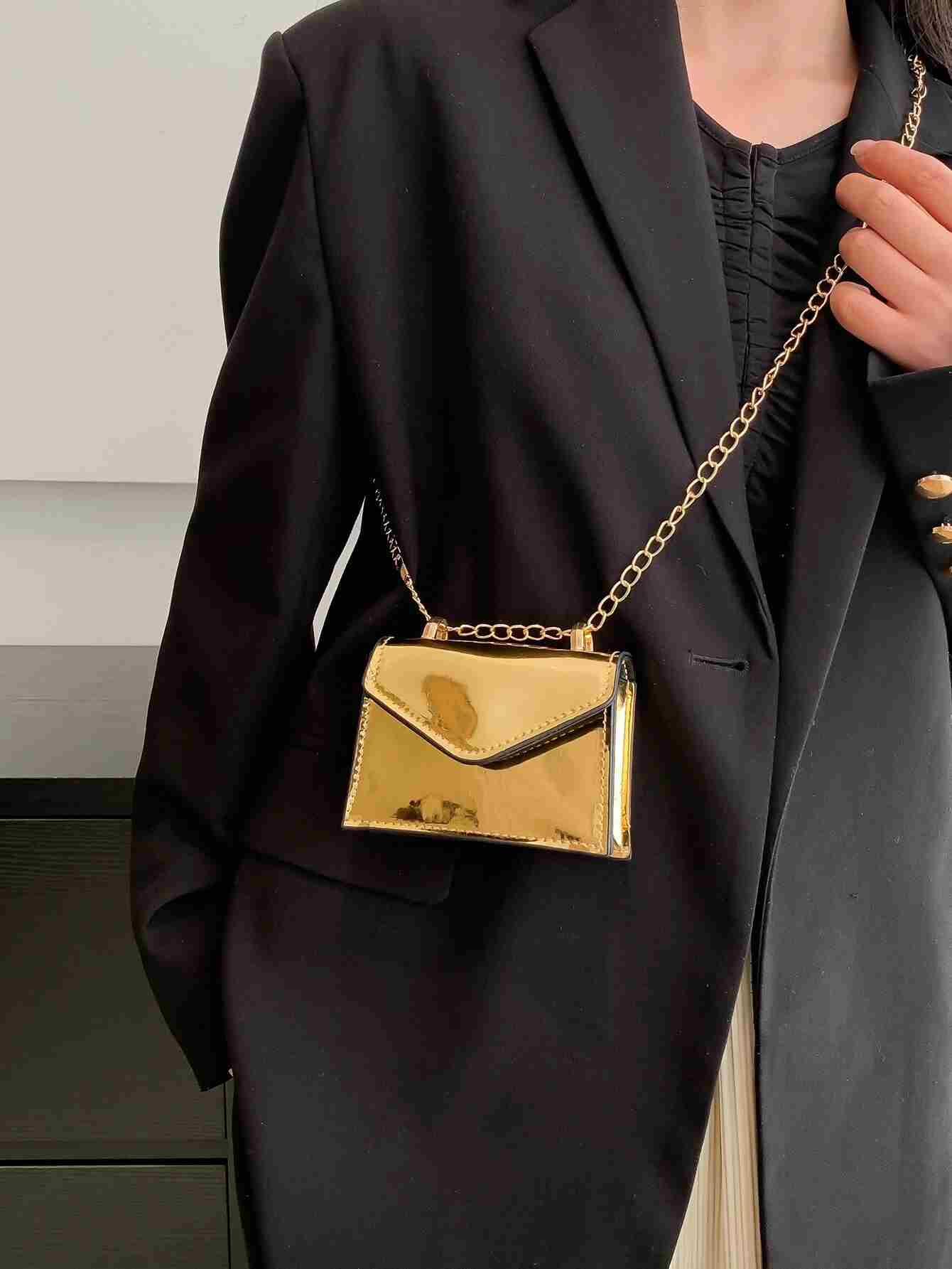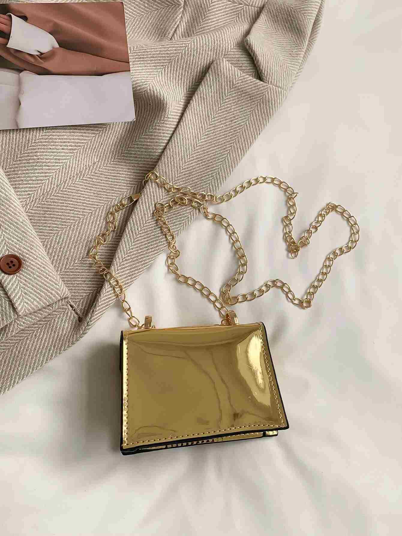 Minibolso cuadrado con solapa de cadena metalizada (sg2212204501010714)