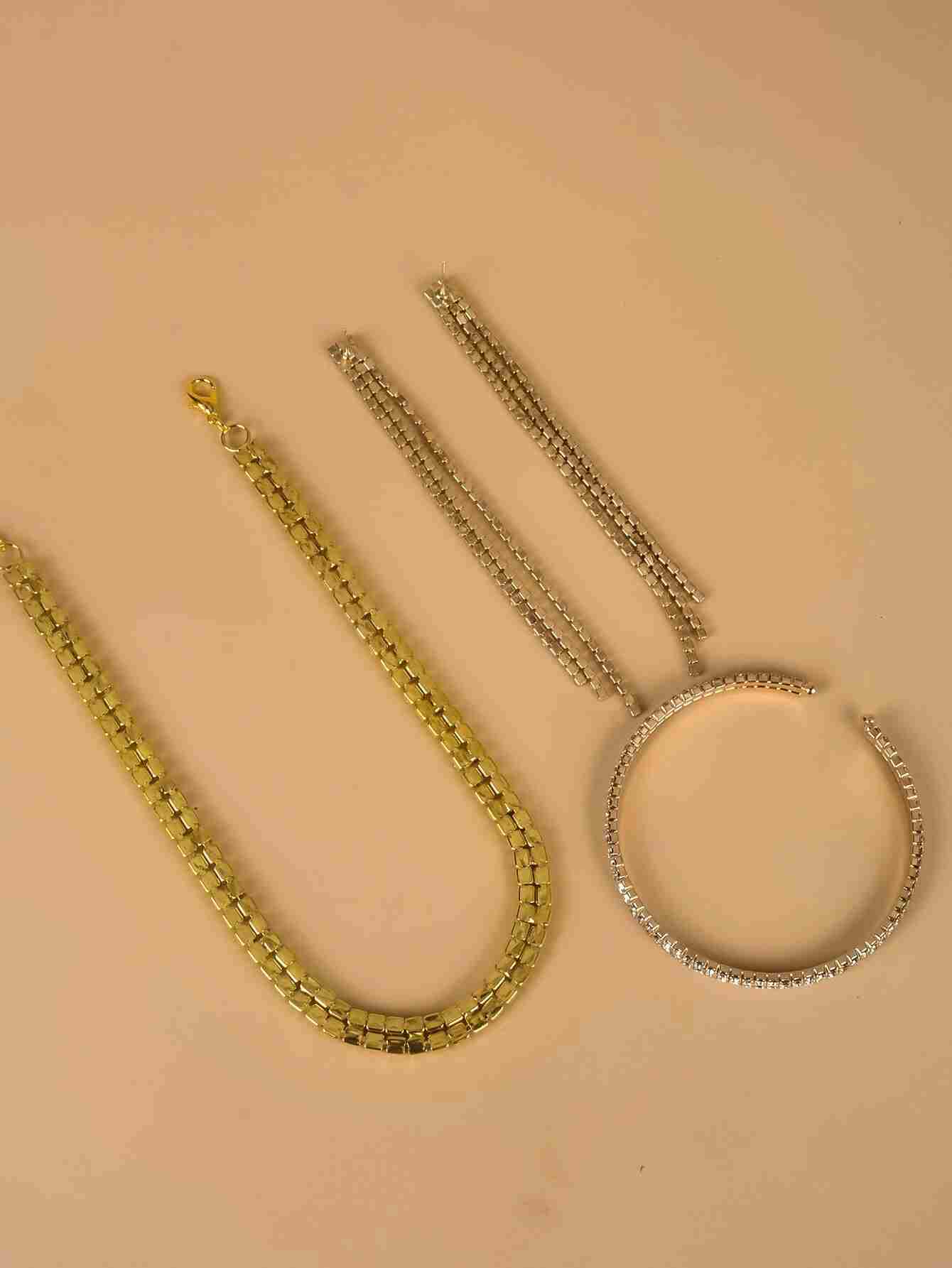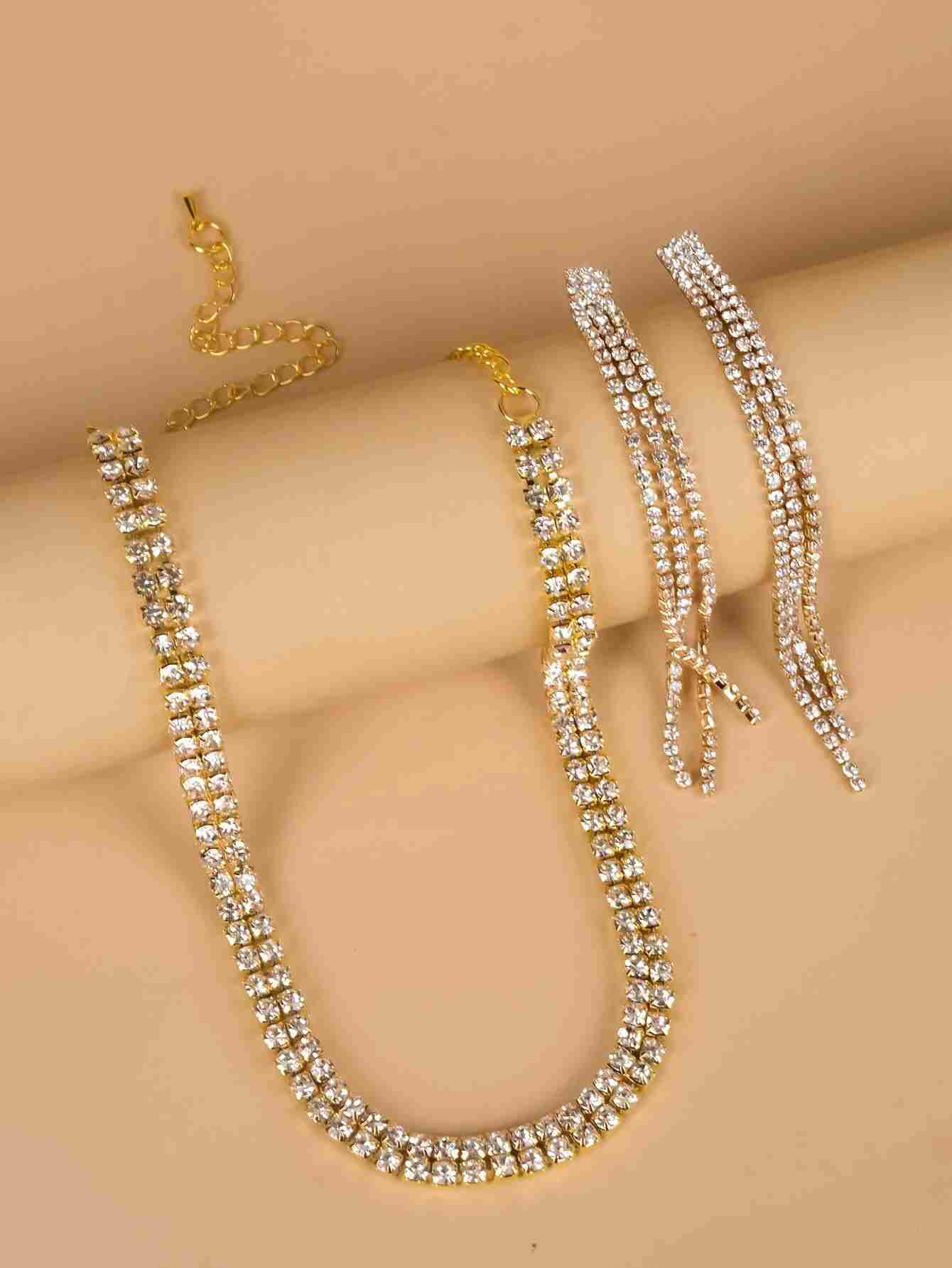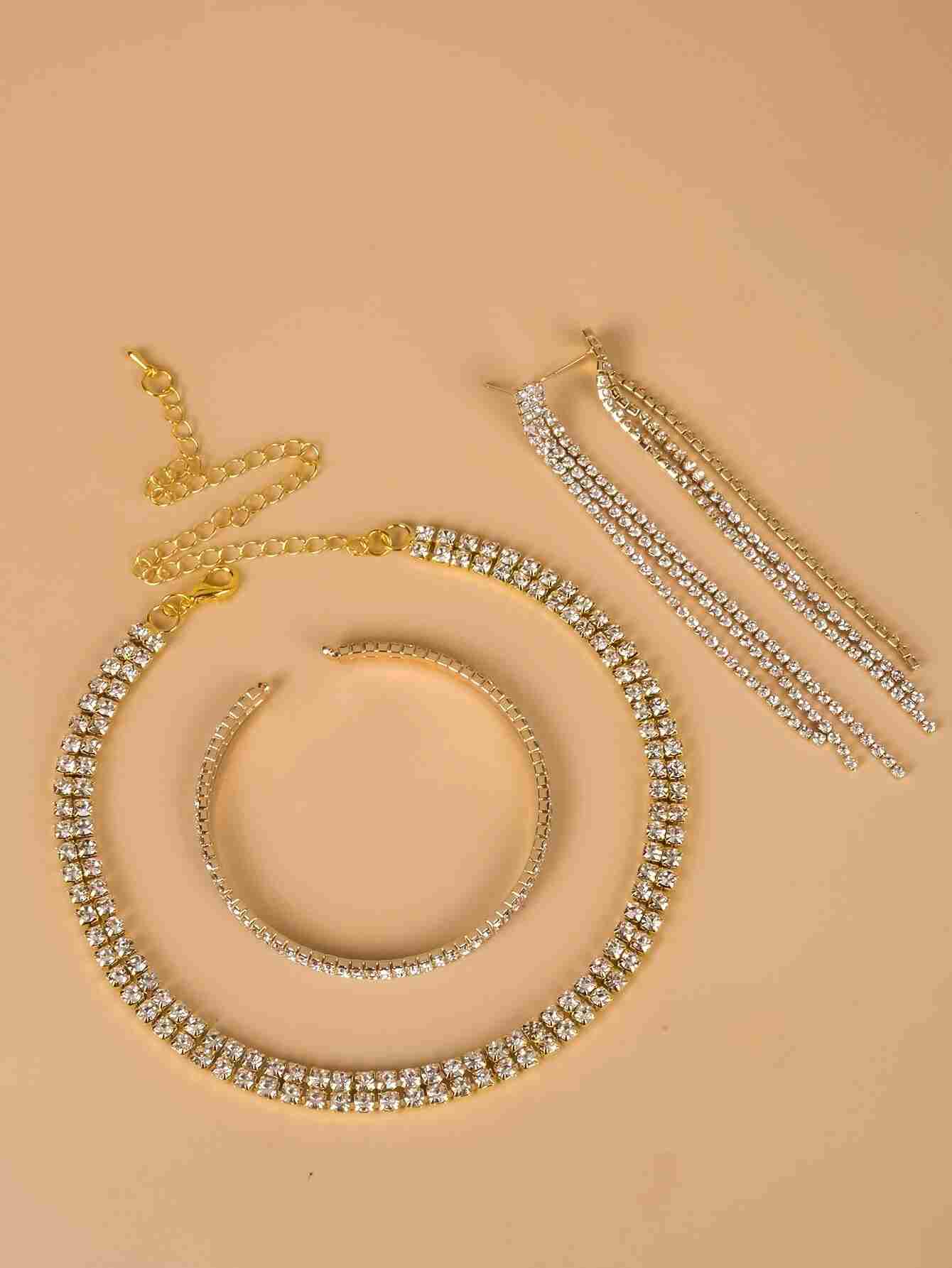 Set de collar, zarcillos y pulsera con diseño de diamante de imitación – 4 Piezas (sj2205084848689838)
