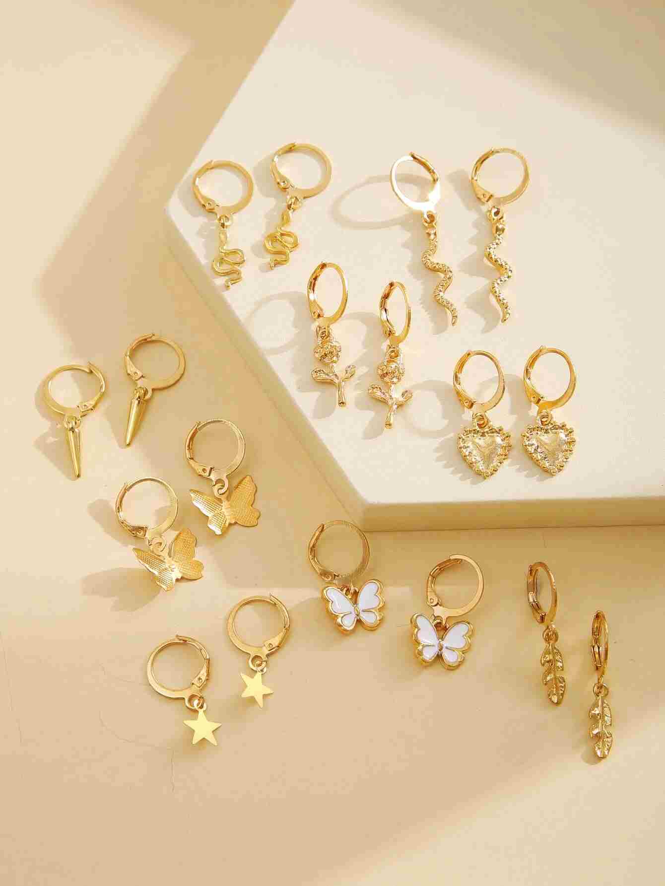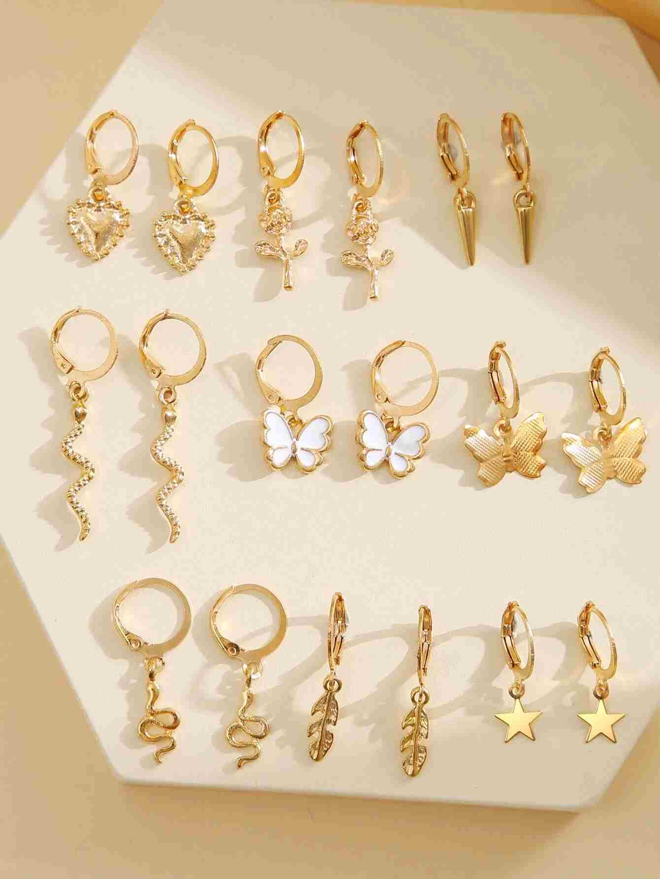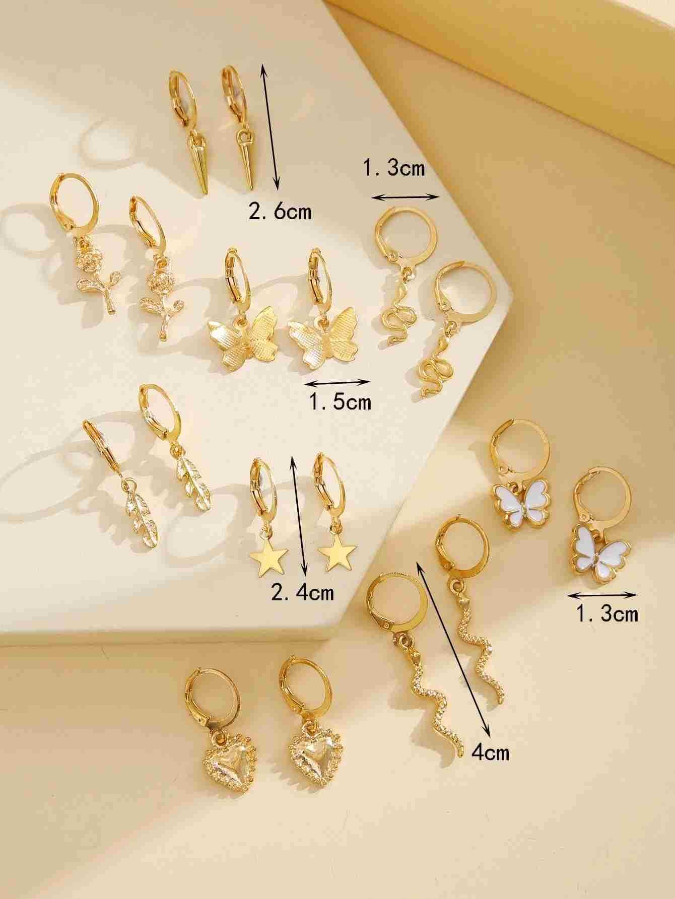 Zarcillos largos con diseño de serpiente y de mariposa – 9 Pares (sj2203208777473795)
